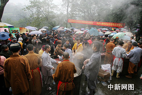 中新網(wǎng)重慶1月22日電 (孟幻)今天是中國農(nóng)歷臘月初八,天空雖然飄著小雨,有些許寒意,數(shù)萬山城市民仍是涌入當(dāng)?shù)厝A巖寺喝臘八粥,過臘八節(jié),期望來年增福增壽。