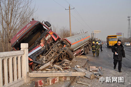 中新網(wǎng)洛陽(yáng)1月27日電 (記者 李金輝 通訊員 王力)1月26日下午15時(shí)許,在洛陽(yáng)市新安縣310國(guó)道磁澗鎮(zhèn)磁澗橋上,一輛滿載30噸氫氧化鈉的槽車不慎側(cè)翻,發(fā)生嚴(yán)重泄漏,周圍居民的生命安全受到極大威脅。