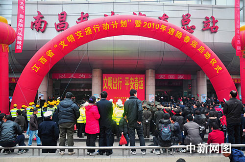 中新網(wǎng)南昌1月29日電(記者 段長征)1月29日,江西省“文明交通行動”及暨道路春運啟動儀式在南昌長途汽車站舉行。這標(biāo)志著江西省“文明交通行動計劃”與2010年道路春運正式拉開帷幕。江西省副省長洪禮和及省文明辦、省公安廳、省交通廳、省交警總隊等部門領(lǐng)導(dǎo)出席了現(xiàn)場啟動儀式。
