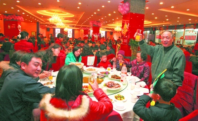 鄭龍(自由職業(yè)者):我家以前都是在家里吃團年飯,現(xiàn)在變成了到外面一邊吃一邊談。現(xiàn)在城里人的消費能力越來越強了,不管你是到哪里吃年夜飯,酒家也好,賓館也好,農(nóng)家樂也好,自己家里也好,關(guān)鍵是要吃得開心。