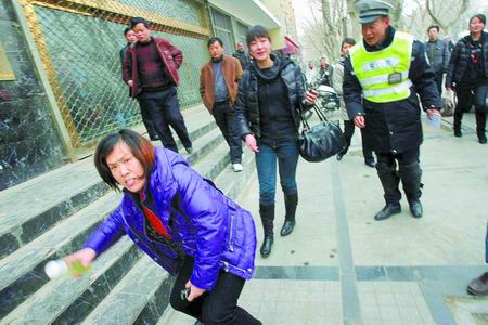 3分鐘后,交警二大隊(duì)民警趕到。在對(duì)違法司機(jī)進(jìn)行處罰時(shí),民警發(fā)現(xiàn)司機(jī)宿輝所駕駛的轎車(chē),登記的是南陽(yáng)市社旗縣晉莊鎮(zhèn)紀(jì)律檢查委員會(huì)所屬車(chē)輛。記者拍照時(shí),遭到一名短發(fā)女子阻攔。隨后,又有兩名黑衣女子上前,開(kāi)始搶奪本報(bào)攝影記者閆化莊的相機(jī),并當(dāng)街追打閆化莊,將他的手背抓爛。整個(gè)過(guò)程持續(xù)了十分鐘,一名DV觀(guān)察員拍攝追打過(guò)程時(shí),也遭到了這三名女子的圍攻和撕扯,在場(chǎng)交警上前制止,其中兩名女子又沖過(guò)來(lái)毆打記者。先期離開(kāi)的特巡警趕來(lái)制止,三名女子仍不愿罷手。
