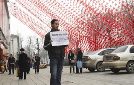 “租女朋友回家過年!”昨日上午,一名小伙在青山紅鋼城舉出這樣一個(gè)小廣告!拔以迥赣H說早談女朋友了,母親非要我今年帶回去,租女友實(shí)在是迫不得已!”昨日,舉小廣告的小伙潘小青難為情地對(duì)記者說。據(jù)潘小青介紹,1995年他20歲時(shí),從江西老家來到武漢,在一所藝術(shù)學(xué)校學(xué)習(xí)聲樂,畢業(yè)后開始在青山紅鋼城一帶做小生意,近年來先后經(jīng)營(yíng)過小酒吧、鞋店和服裝店等。今年1月24日,他把店子轉(zhuǎn)讓出去,準(zhǔn)備回江西老家與親人團(tuán)聚!白馀鸦丶,既不是有什么非分之想,也不是為了炒作!”潘小青明確表示,租女友回家過年,是為了讓母親過得開心。潘小青的母親今年54歲,患有腰椎間盤突出,身體狀況非常不好。眼看潘小青的同齡人紛紛結(jié)婚生子,可潘小青一直單身,做母親的非常著急。