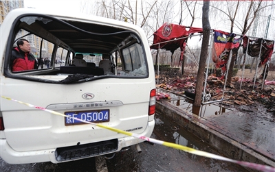 事發(fā)后,豐臺(tái)警方立即趕到現(xiàn)場。大紅門、右安門兩支消防隊(duì)9輛消防車到場救援。6點(diǎn)15分左右,現(xiàn)場大火被基本撲滅。昨天上午7點(diǎn),記者在現(xiàn)場看到,地上布滿了煙花殘屑,20多平米的煙花大棚只剩下支撐的鐵架子,棚內(nèi)存放的煙花和遮棚布全被燒光。福田面包車的車窗玻璃被炸碎,車內(nèi)一片狼藉。周圍多輛轎車被波及,有一輛車的輪胎外側(cè)金屬圈被炸飛,多輛車的車身被炸花。