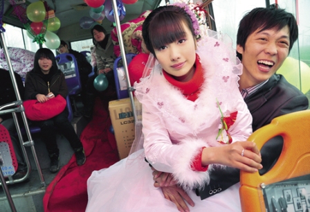 “今天,公司領(lǐng)導(dǎo)安排我來(lái)現(xiàn)場(chǎng)向兩位新人表示祝賀,這種方式不僅節(jié)儉,而且很時(shí)尚。”昨天,阜陽(yáng)市公交總公司黨委辦負(fù)責(zé)人孫九青說(shuō)。得知鄧輝的心愿后,公司選了一輛嶄新的1路公交車。