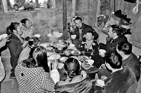 “快點烤一會兒再去泡個熱水澡。你娃兒他媽老早就給你燒好了洗澡水。完了出來吃團年飯,我們一直在等你!崩细赣H幫譚崇文一邊卸著包袱一邊說。