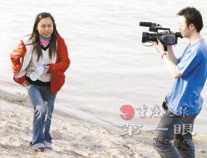 家住江北區(qū)東方家園小區(qū)3棟的余靜告訴記者,她昨下午3點半在袁家崗奧體中心外草坪也偶遇“鳳姐”!啊P姐’擺好姿勢,旁邊有幾名手持DV的工作人員正在拍攝,應(yīng)該在出外景。有一位朋友上前欲向‘鳳姐’搭訕,未被搭理。在現(xiàn)場拍攝10多分鐘后,‘鳳姐’等人便離開了!庇嘈〗阏f。