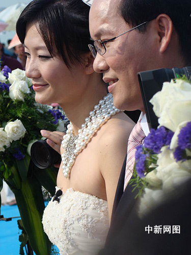下午3時不到,新娘李丹旻身披潔白婚紗在兩位美麗伴娘的陪同下,出現(xiàn)在游艇岸邊的儀式現(xiàn)場。她向記者表示,與新郎康造東相愛也有好幾年,今天在親人和朋友以及在現(xiàn)場很多不認(rèn)識的朋友見證下,舉行婚禮,既興奮又緊張,“我們成為海南首對游艇婚禮的參與者,感覺我是最幸福的新娘!崩畹F甜美地笑著說。