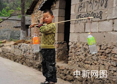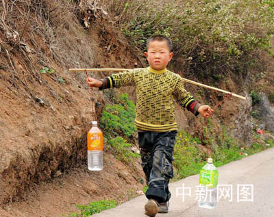 中新網(wǎng)興義3月29日電 (曹多然 章瑩)黔西南旱情目前仍在持續(xù)。3月29日,記者此間在貴州旱區(qū)走訪中發(fā)現(xiàn),當(dāng)?shù)卮迕袢駝?dòng)員,通過(guò)找水、買(mǎi)水等方式積極開(kāi)展自救,取水路上不時(shí)可見(jiàn)稚齡“小水童”的身影。貴州興義市白碗窯鎮(zhèn)柳樹(shù)坪村8歲的劉凱就是其中的一員。