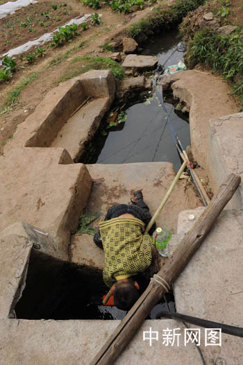 小劉凱告訴記者,受持續(xù)干旱缺水影響,他到村莊到遠(yuǎn)處取水已經(jīng)有一周時(shí)間了。由于供村里食用的水源在慢慢減少,每天中午放學(xué)后,劉凱都要擔(dān)著自己的“水桶”到遠(yuǎn)地“打水”,往返需要近半個(gè)多小時(shí)。據(jù)記者上前仔細(xì)察看,小劉凱取水之地作為村里為數(shù)不多的水源之一,渾濁的水面難以見(jiàn)底,水源質(zhì)量令人擔(dān)憂。