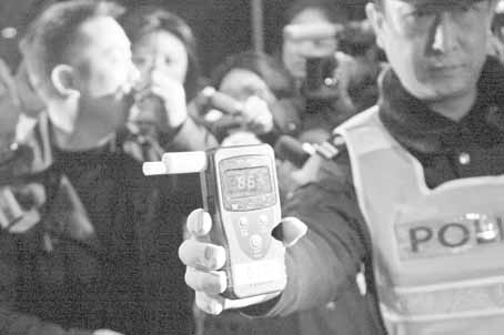 零點12分,一輛黑色的奧迪被民警攔了下來。記者眼看著測試儀上的紅字跳躍著往上升,達到86的時候才停下來。