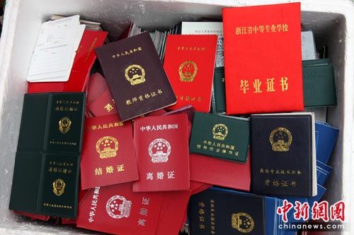 中新網(wǎng)舟山4月4日電(記者 趙曄嬌 通訊員 夏方)2日中午,浙江舟山市定海警方搗毀一特大造假證窩點(diǎn),繳獲數(shù)千本半成品假證件,涉及駕駛證、結(jié)婚證、房產(chǎn)證、軍官證、健康證、運(yùn)輸證等30多個(gè)種類(lèi),可謂包羅萬(wàn)象。其中,以各類(lèi)學(xué)歷證書(shū)、英語(yǔ)等級(jí)證書(shū)出貨量最大。