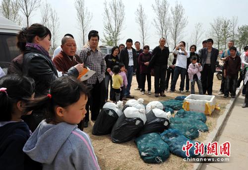 此次放生活動的熱度也感染了不少在黃河邊祭典先祖的鄭州市民,他們也紛紛加入到放生行列中。一位王姓市民表示,這種放生形式不污染環(huán)境,又可以保護(hù)生態(tài)平衡,他今后將選擇這種放生的方式追憶哀思,行善事來報答先祖。完