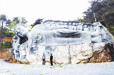 近日,一尊長33米、高11.5米的青石臥佛在長樂市潭頭鎮(zhèn)邊蘭村錦鋰巖建成。這尊巨型臥佛就地取材,由一塊天然整體青石巖現(xiàn)場雕刻而成,在大臥佛旁邊,還有12尊高2.8米的小佛像。這尊臥佛2007年初開始雕刻,歷經(jīng)3年,由惠安崇武著名雕刻大師和雕刻高手設(shè)計,20多人雕刻而成。