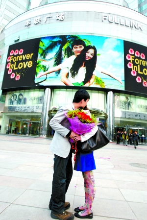 婷婷的男友田新?tīng)I(yíng)告訴記者,他比婷婷年長(zhǎng)兩歲,來(lái)自山東,和婷婷是通過(guò)朋友介紹認(rèn)識(shí)的。當(dāng)時(shí)他剛剛辭了工作,正處于事業(yè)的低谷,可是婷婷并沒(méi)嫌棄,反而給了他無(wú)限的勇氣,后來(lái)他找到了新工作。田新?tīng)I(yíng)說(shuō),半年前他就一直在想以什么方式向婷婷求婚,有一天他從這塊大屏幕下路過(guò),突然來(lái)了靈感。1個(gè)月前,他向商場(chǎng)請(qǐng)求,想通過(guò)大屏幕向女友求婚。商場(chǎng)覺(jué)得這是件好事兒,很爽快地答應(yīng)了。于是就有了這段浪漫、溫馨的求婚現(xiàn)場(chǎng)。(于海波)