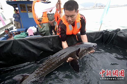 據(jù)介紹,此次是繼2001年、2008年以來(lái),廈門(mén)海域第三次實(shí)施中華鱘較大數(shù)量的放流增殖。此次放流的中華鱘年齡為4-5年,規(guī)格為每尾20-30公斤,在放流前都經(jīng)過(guò)半個(gè)月以上的海水馴化,并加以體外和體內(nèi)標(biāo)志。