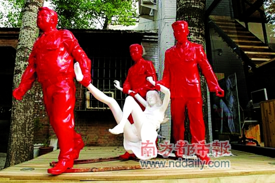 艾未未工作室對南都記者說,艾未未并沒有關(guān)注這一事件,他關(guān)心的是另一件“女子刺死官員事件”。一番了解后記者得知,這件名為“抓小姐”雕塑的真正作者是新銳藝術(shù)家高氏兄弟。高氏兄弟告訴南都記者,這件雕塑是2007年參加一個聯(lián)展時的作品,展出后就放在了798他們的工作室前,但2009年5月18日晚突然被798的物業(yè)“偷”走了,雖然早已報案,但雕塑至今仍沒歸還。
