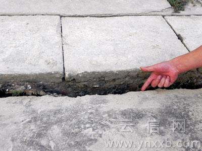 5月8日上午,記者在施工現(xiàn)場(chǎng)看到的是,挖掘機(jī)正在作業(yè),基坑的開挖已經(jīng)成形,進(jìn)出小區(qū)的通道不過2米左右。由于基坑的開挖沒有坡度,基坑四周的泥土開始下滑,施工方用一些木樁做圍欄來?yè)踝∧嗤恋南禄T谛^(qū)2棟的通道處,可以看到一條明顯的裂縫,通道地坪與房屋底部錯(cuò)開大約5厘米左右,在整棟房屋中間的沉降縫也出現(xiàn)明顯的裂縫,尤其小區(qū)一棟房屋的沉降縫,站在房屋前面可以透過縫隙看到后面的光亮,抬頭看整棟房屋的屋頂,沉降縫一側(cè)的房屋有些前傾。