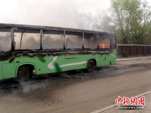 中新網(wǎng)吉林5月17日電(蒼雁)5月17日早7時(shí)許,吉林市一輛載有乘客的公交車在行駛途中突然發(fā)生自燃,火勢十分猛烈,整個(gè)車廂被燒毀。車上10余名乘客成功自救,未發(fā)生人員傷亡。