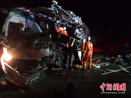 消防官兵現(xiàn)場了解到,事故發(fā)生后兩車上的傷員已在先期到場的民警及現(xiàn)場熱心群眾的幫助下送往醫(yī)院救治,但仍有10人被困于兩車之上,估計全部遇難。為盡可能救助受困人員,消防官兵馬上組織了救援行動,四名官兵爬上變形車體,利用液壓擴張器和切割機切開擠壓在被困者身上的零部件,而后將人員一一抬出。可是因車體變形扭曲嚴(yán)重,多名遇難人員均是被座位和車輛部件緊緊絞壓,使得救援行動困難重重。