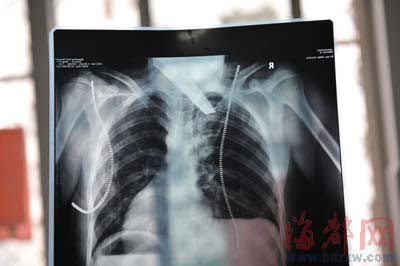 前晚,在第一醫(yī)院急救室,經(jīng)過4個多小時的搶救,醫(yī)生將匕首從小勇身上取出,發(fā)現(xiàn)這把匕首的刀尖扎斷了1厘米。由于小勇肺部被刺中,昨天上午,醫(yī)生再次進(jìn)行了3個多小時的手術(shù),切除了受傷的部分肺,直到下午,小勇才挺過來。“挺了一夜,現(xiàn)在總算醒了過來!睏钆恳灰箾]睡,守在手術(shù)室外7個多小時,生怕兒子再醒不過來。不過,由于傷勢嚴(yán)重,小勇目前戴著氧氣呼吸,仍未脫險。