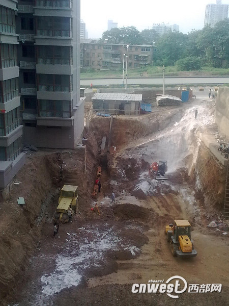 據(jù)中國之聲《央廣新聞》13時(shí)25分報(bào)道,西安長(zhǎng)安區(qū)自來水公司緊鄰一棟30層高的住宅樓違規(guī)深挖蓄水池,小區(qū)業(yè)主及網(wǎng)友將之稱為“樓坑坑”。