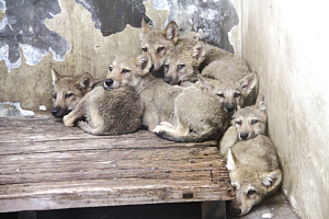 11日上午,在工作人員的指引下,記者在狼館終于看到7只小狼崽害羞地走了出來(lái)。7只小狼崽都是全身黑灰色,身長(zhǎng)約30厘米,極像小狗,溫順乖巧的樣子一點(diǎn)也看不出狼的兇狠。常州淹城野生動(dòng)物世界副總經(jīng)理、動(dòng)物專(zhuān)家李代兵分析說(shuō),它們先前一直跟山羊媽媽一起生活,這個(gè)“羊奶媽”對(duì)它們的影響很大。