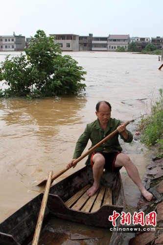 中新網(wǎng)撫州6月22日電(張見悅 艾永全 何柳斌)江西省第二大河撫河決堤之后,當?shù)鼐用衽c各處趕到的抗洪大軍一道,展開生死救援,在重災區(qū)羅針鎮(zhèn)梅家渡村,一位中年男子用自己家的小舢板來回數(shù)十趟,將100多鄉(xiāng)親從澤國中送到了公路高地。