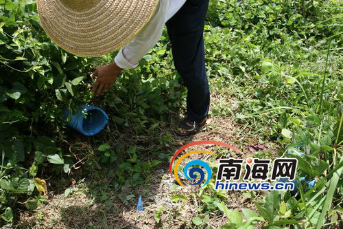 接到反映,南海網(wǎng)記者趕到位于牛嶺隧道旁的南海天闕.銀牛嶺度假別墅酒店項(xiàng)目工地,在工人們的帶領(lǐng)下,記者找到工地的蓄水池。在蓄水池下方的草叢中,被砍斷的水管赫然出現(xiàn)在記者眼前。