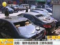 沈陽一樓外墻皮脫落 樓下三輛轎車被砸癟