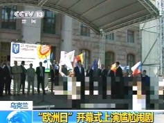 烏"歐洲日"開(kāi)幕式上 兩女子裸體扮小丑抗議