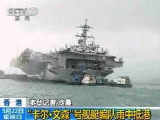 美“卡爾·文森”號(hào)艦艇編隊(duì)雨中抵港