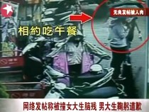 發(fā)網(wǎng)帖罵被撞死女生為腦殘 大學(xué)生鞠躬道歉