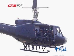 演練當日,隨著兩輛軍用吉普車急停在賓館之外,中印尼特種兵對賓館的包圍迅速完成,狙擊手就位;同時一架直升機懸停在賓館上空,十幾名中印尼特種兵迅速索降,并對賓館實施突擊強攻,同時隱藏的狙擊手清除目標,幾聲槍響之后,人質(zhì)被成功解救,恐怖分子的圖謀被徹底粉碎。