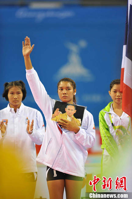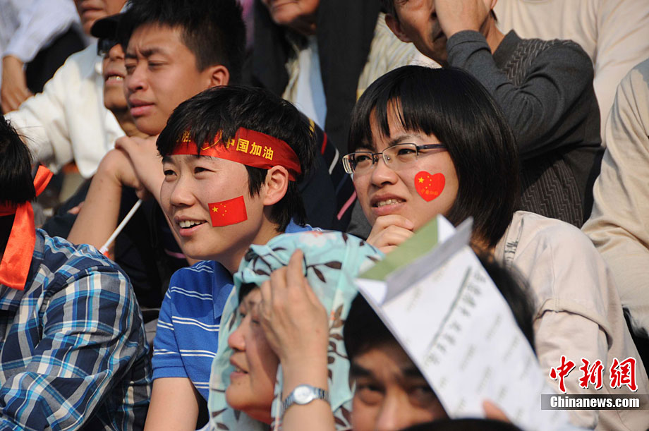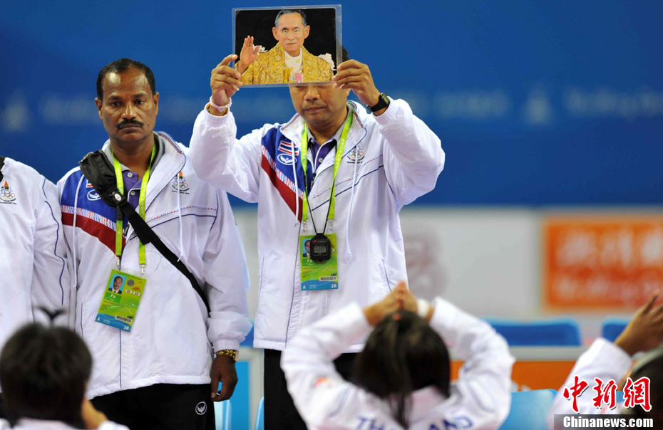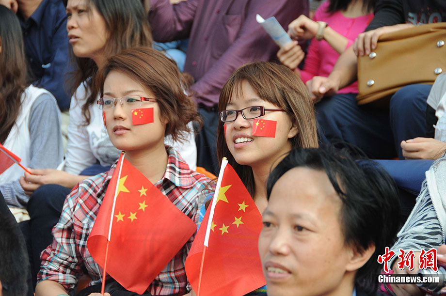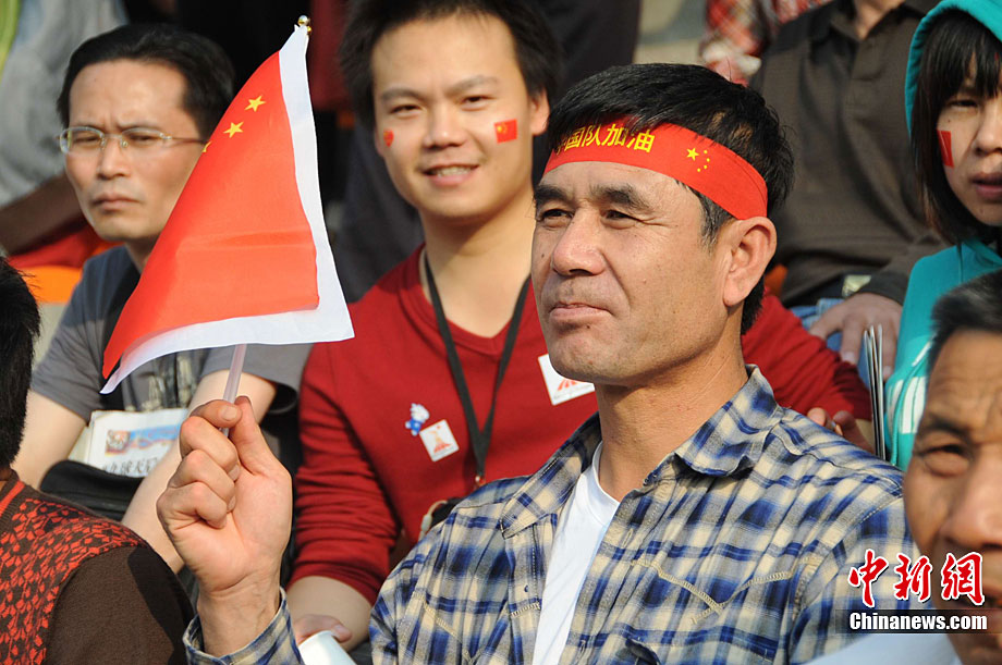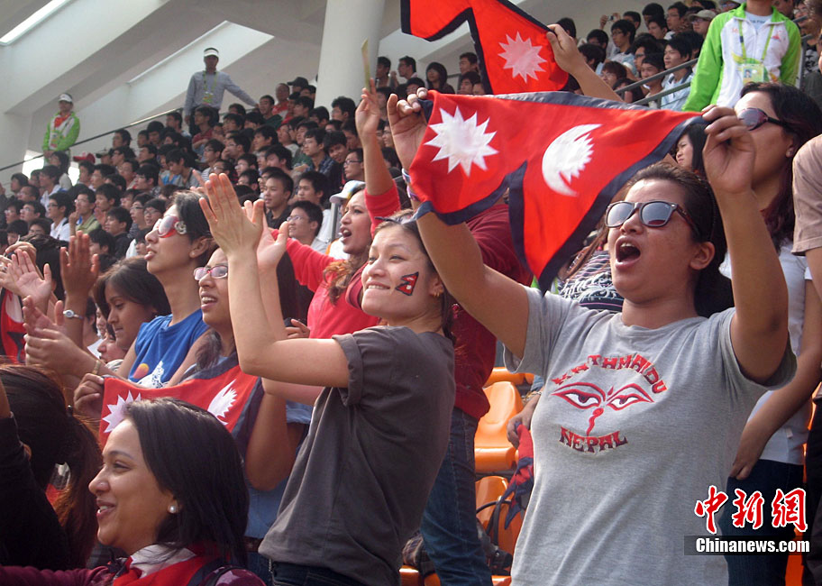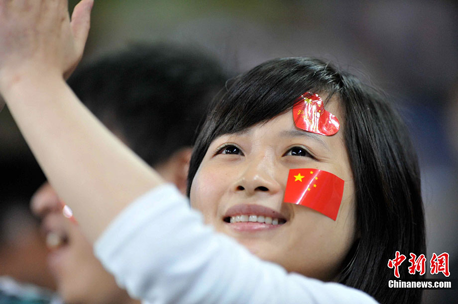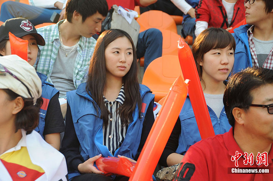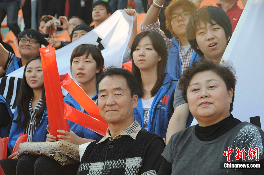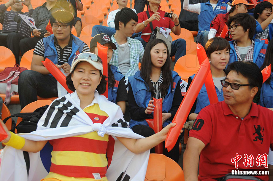廣州亞運(yùn)會(huì)女子足球賽中國(guó)隊(duì)與韓國(guó)隊(duì)的銅牌爭(zhēng)奪戰(zhàn)11月22日在廣州天河體育館開(kāi)打。圖為賽場(chǎng)上的韓國(guó)球迷。中新社記者 唐貴江 攝