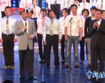 我們這次合作是很有意思的 最先是我們聽 那三位大師唱 后來大師又聽我們唱了 這次呢是大師在指揮 我們來唱 然后還站在一塊唱 這比較新鮮