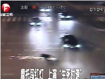 實拍:摩托闖紅燈 上演“生死時速”