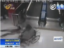 實拍:失控輪椅從自動扶梯上沖下 女子被撞飛