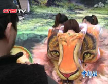 實(shí)拍:畫(huà)家用三名女模繪出3D獅子圖