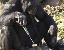 實(shí)拍:美國31歲大猩猩用打火機(jī)生火煮飯