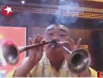 嗩吶達(dá)人“吹破天”展示鼻子吹嗩吶獨(dú)門(mén)絕活