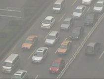 【解說詞】記者上午8點在現(xiàn)場看到,20余輛貼著“!弊值拇蟀驼R的停靠在出發(fā)點,車上坐著的全是湖北省內(nèi)在漢的農(nóng)民工,他們每人一份的手提袋里放著一張免費的愛心車票、一份年貨、一套書以及一份平安人生意外險。愛心大巴將載著這些辛勞一年的農(nóng)民工們奔赴他們的家鄉(xiāng)與家人團(tuán)圓。