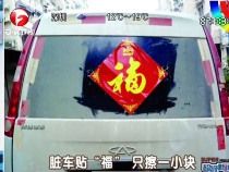 懶惰車主后玻璃只擦一小塊留“福”地