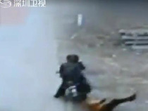 實(shí)拍:飛車賊搶包 半路殺出好漢制匪