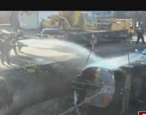 實拍:云南一油罐車側翻變“炸彈”緊急排險