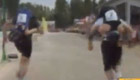 實(shí)拍:男子公路? 站著騎摩托車