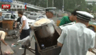 實(shí)拍:司機(jī)察看輪胎 瞬間被炸飛
