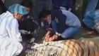 實拍:男子情緒失控 腳系床單倒掛窗外
