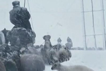 男子發(fā)現(xiàn)鴨子被凍湖面 跳湖破冰救援