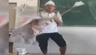 驚險(xiǎn)!路邊男子撿起石塊突襲公交 乘客驚慌躲避