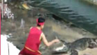 比基尼美女藏身玻璃籠 水下與巨鱷親密接觸